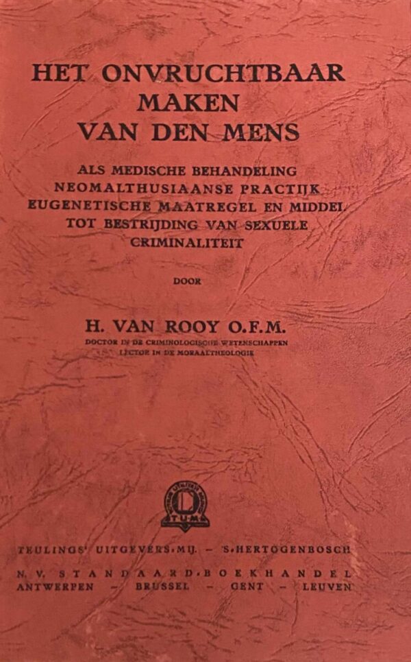 Home / Gezondheid & Geneeskunde / Het onvruchtbaar maken van den mens. Als medische behandeling, neomalthusiaanse practijk, eugenetische maatregel en middel tot bestrijding van sexuele criminaliteit Het onvruchtbaar maken van den mens. Als medische behandeling, neomalthusiaanse practijk, eugenetische maatregel en middel tot bestrijding van sexuele criminaliteit€10.00 1 op voorraad Het onvruchtbaar maken van den mens. Als medische behandeling, neomalthusiaanse practijk, eugenetische maatregel en middel tot bestrijding van sexuele criminaliteit aantal Toevoegen aan winkelwagen Toevoegen aan favorieten Artikelnummer: 035873 Categorie: Gezondheid & Geneeskunde Beschrijving Beschrijving (XII) 284 p. Paperback (Net exemplaar.) Auteur: ROOY, H. VAN Uitgever: 's-Hertogenbosch, Teulings 1938 Gerelateerde producten Toevoegen aan favorieten Schraven, Wouter Gezondheid & Geneeskunde Als de dokter somber kijkt. Over leven, kanker en geloven Toevoegen aan favorieten Jap, Hok-Gan Gezondheid & Geneeskunde Das Examen Chirurgicum. Ein holländisch-schiffsärztliches Traktat von Johannes Verbrugge Toevoegen aan favorieten BLÉCOURT, WILLEM VAN Gezondheid & Geneeskunde Het Amazonenleger. Irreguliere genezeressen in Nederland, 1850-1930. Toevoegen aan favorieten Dahlke, Rüdiger Gezondheid & Geneeskunde De eenheid van mens en wereld. Visie op ziekte en gezondheid