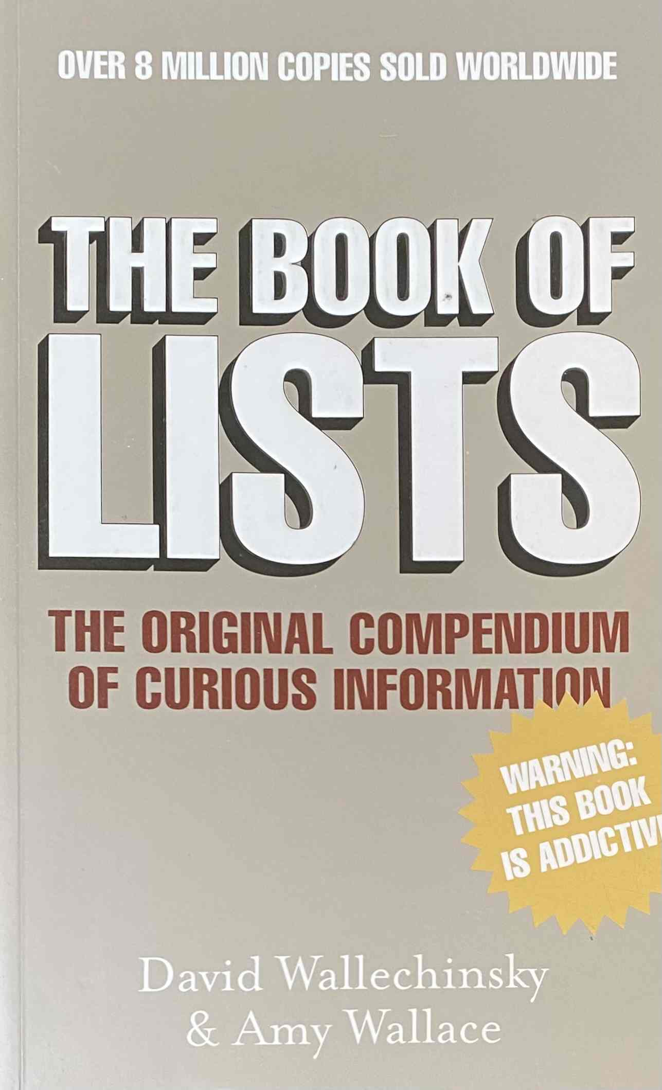 Home / Technologie & Wetenschap / The Book of Lists. The Original Compendium of Curious Information The Book of Lists. The Original Compendium of Curious Information€8.50 1 op voorraad The Book of Lists. The Original Compendium of Curious Information aantal Toevoegen aan winkelwagen Artikelnummer: 042040 Categorie: Technologie & Wetenschap Beschrijving Beschrijving 468 (1) p. Paperback (In good condition.) Auteur: Wallace, Amy, Wallechinsky, David Uitgever: Edinburgh, Canongate 2004 ISBN: 9781841955537 Gerelateerde producten ISAAK, MARK A. Technologie & Wetenschap The Counter-Creationism Handbook Duncan, David Ewing Technologie & Wetenschap De kalender. Op zoek naar de tijd Bodifee, Gerard Technologie & Wetenschap Het vreemde van de aarde. Strakke natuurwetten en onberekenbaar leven KOMAR, DANIEL J., Planche, François Technologie & Wetenschap Swatchwatches